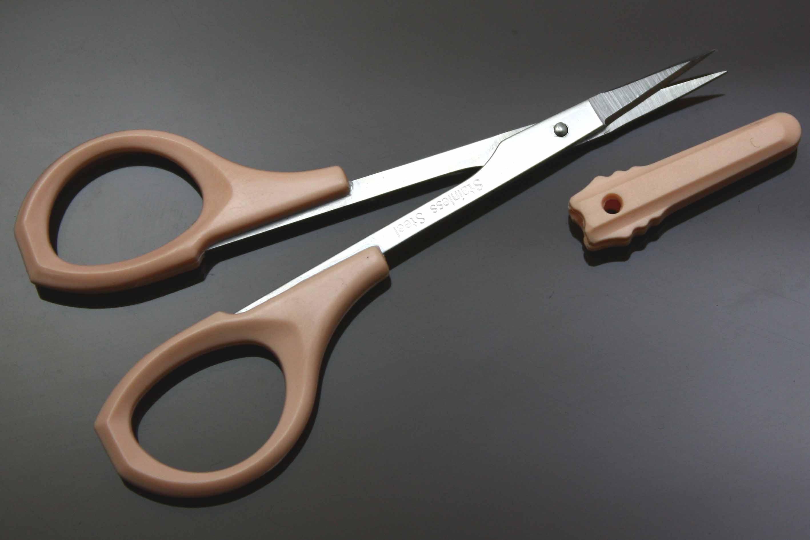 剪刀為不銹鋼,柄為塑膠